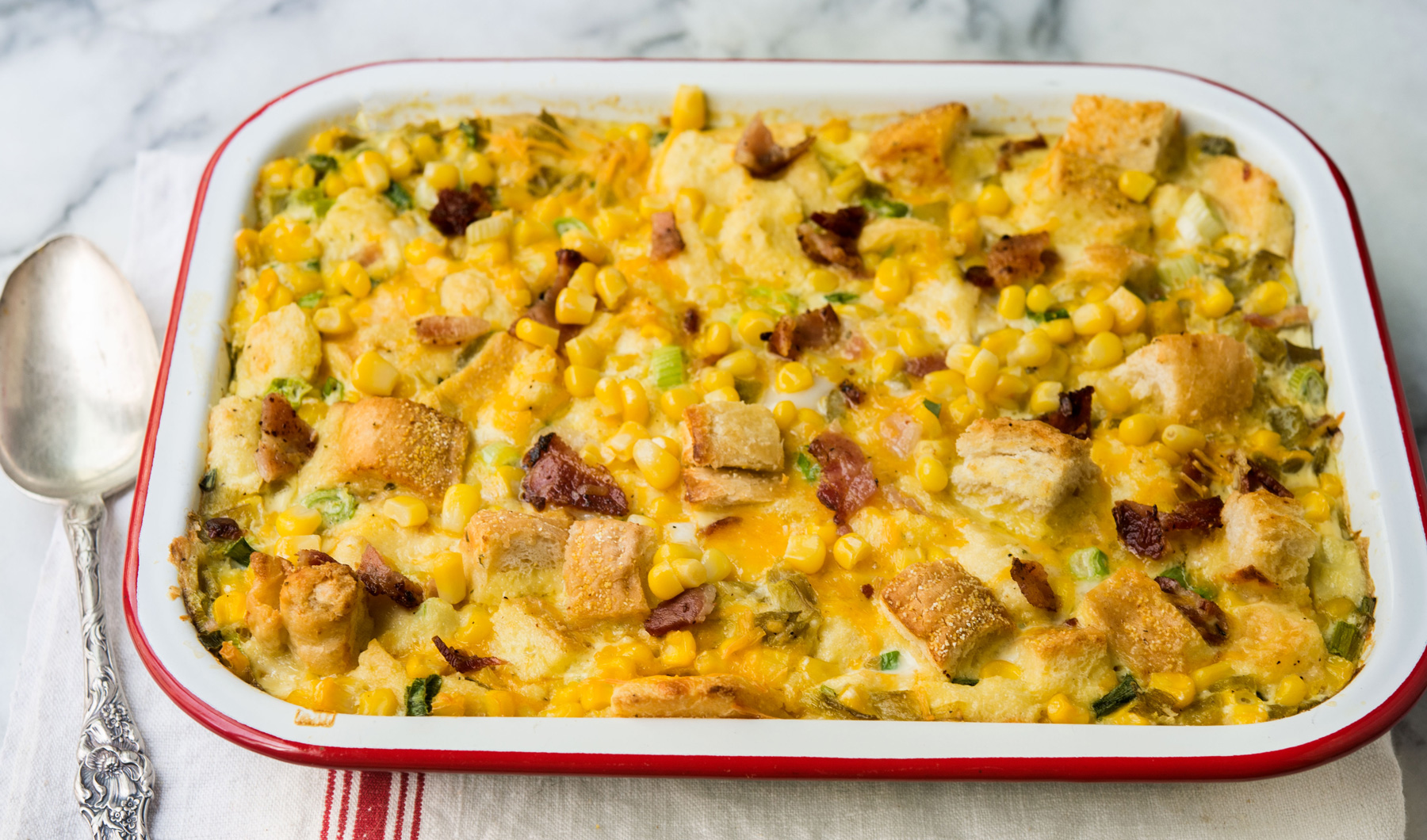 Treat guests to this classic Southern dish made with corn, eggs, heavy cream, green chilies and New York Bakery® Texas Toast with Real Garlic.